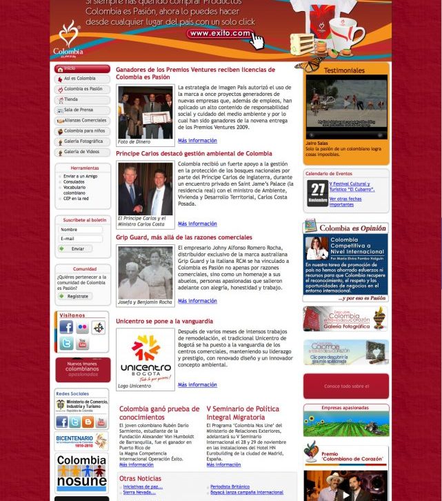 Conception du site web du portail officiel de la marque pays Colombia is Passion (2009-2010).