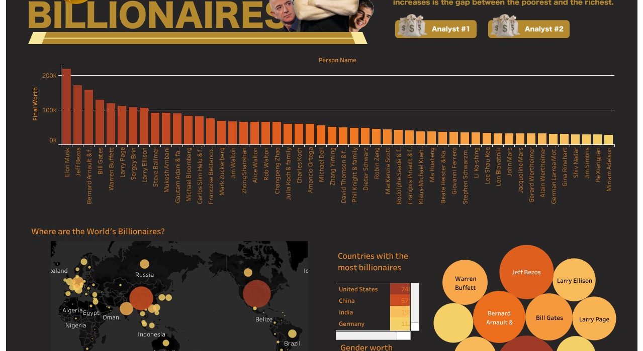 Nous pouvons rarement mesurer ou remettre en question l’échelle de l’inégalité de la richesse dans le monde, c’est une des raisons pour lesquelles nous sous-estimons la richesse des milliardaires. Dans ce cas, j’en viens au thème pour réaliser une visualisation de données dans le logiciel Tableau qui nous apporte des réponses rapides et nous interroge à fond sur cette réalité : l’écart se creuse et nous sommes spectateurs.
