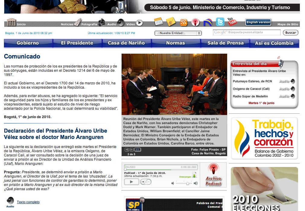 Conception de sites Web pour le portail gouvernemental de la présidence de la République de Colombie (2006 -2010).